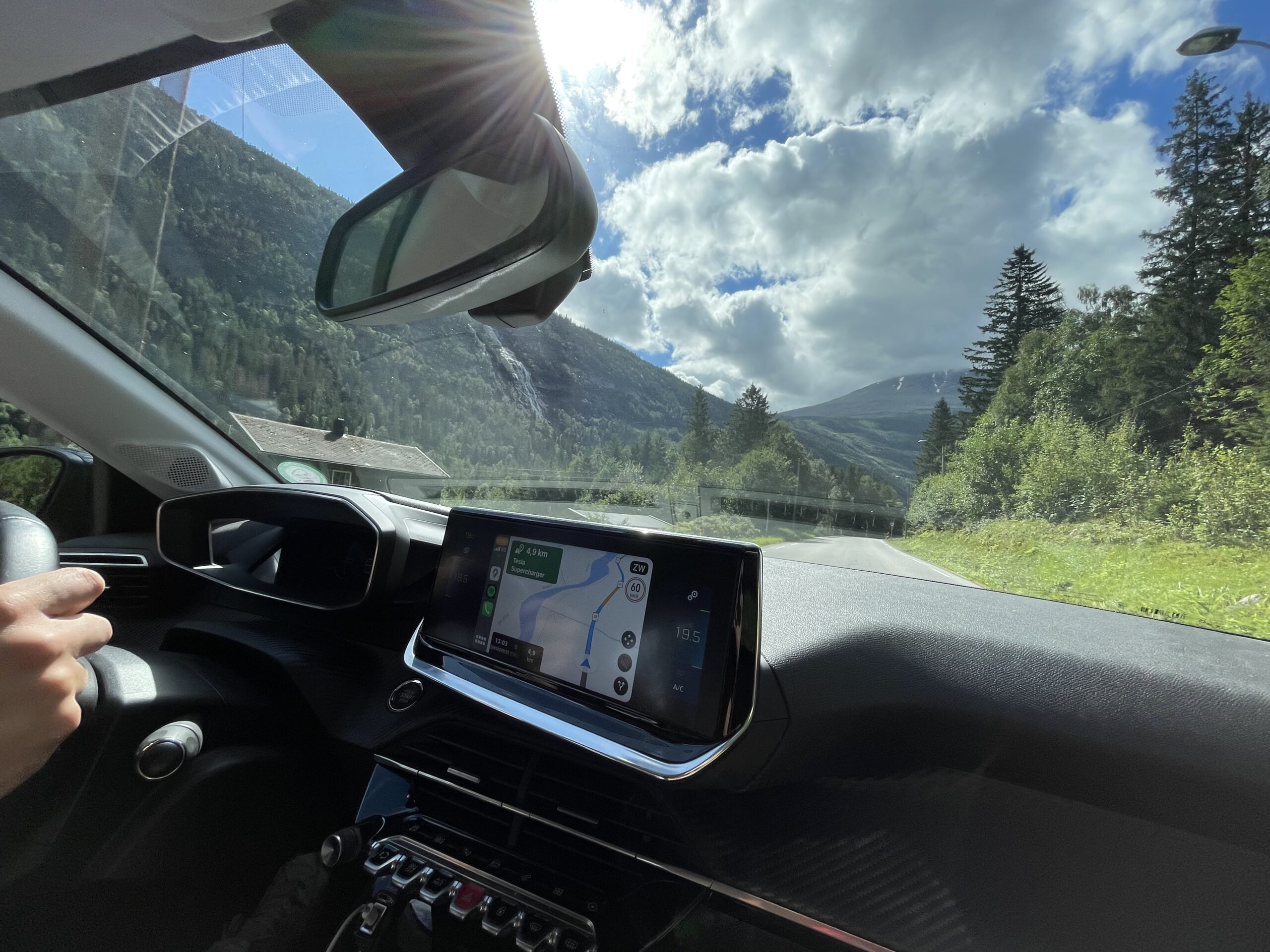 De roadtrip naar Noorwegen is dan ook zeker niet onze eerste lange reis met de e-208. Zo heeft onze Fransoos zich al bewezen tijdens trips naar Londen, Parijs en meermaals richting de Italiaanse zon. Hierdoor weten we dan ook: voorbereiding is alles. Dat is dan ook de reden dat ik voor elke lange reis een “laadplan” maak. Met Google Maps op m’n laptop met daarbij de route, rekening houdend dat we om de 200 km toch wel moeten laden en verschillende apps op de telefoon rolt daar een leidraad voor de reis uit. Even snel bijladen hier, volledig opladen daar en zo komen we zonder veel stress aan op onze eindbestemming. Vaak dan. Want zodra een laadpark vol is of een laadpaal weigert, dan moeten we toch improviseren.