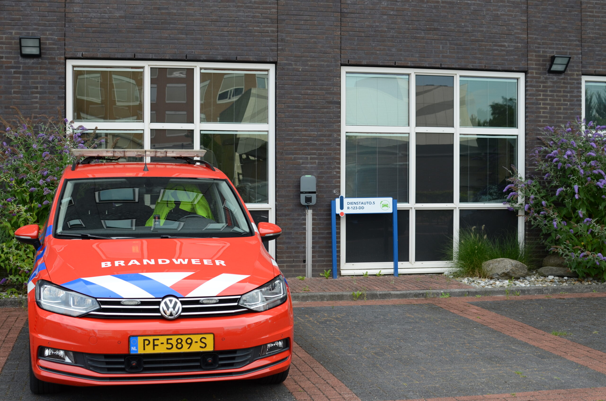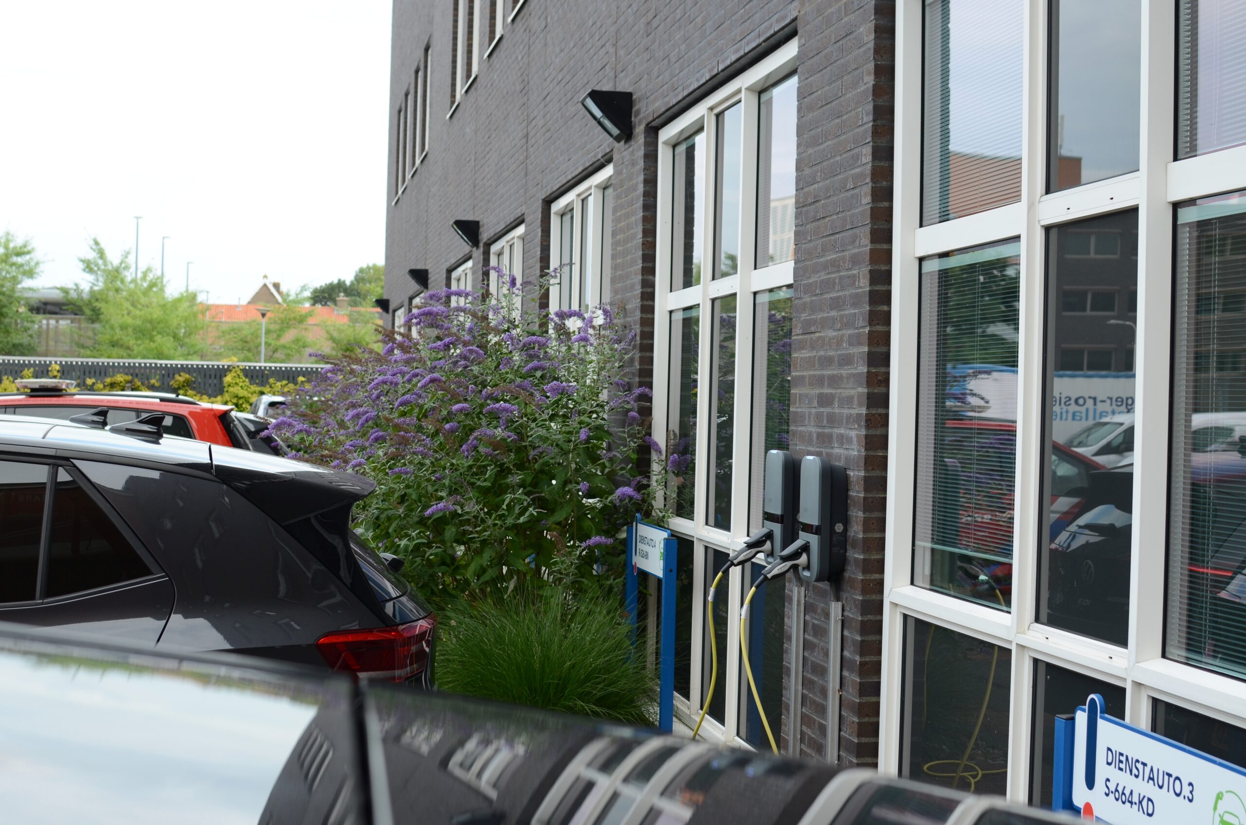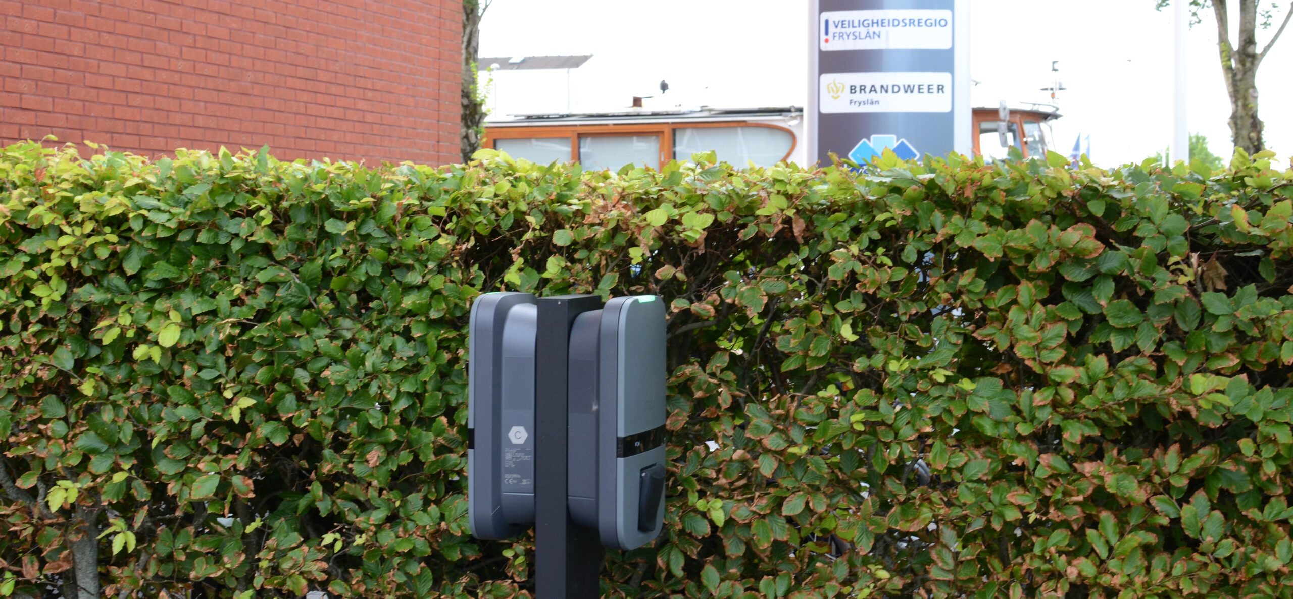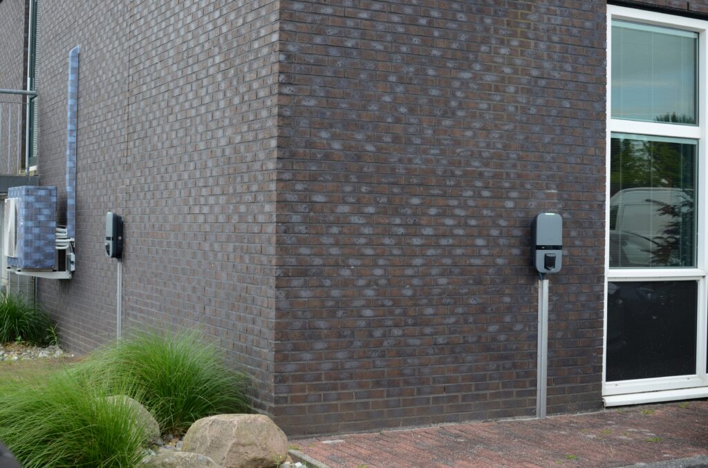 De laadpunten die jarenlang trouw dienst hebben gedaan voor de Veiligheidsregio Fryslân zijn gedemonteerd en daar zijn nieuwe Peblar Business-laadpunten voor in de plaats gekomen. Zes hangen aan de muur van het bedrijfspand. Twee Peblars zijn te vinden op een dubbele paal.