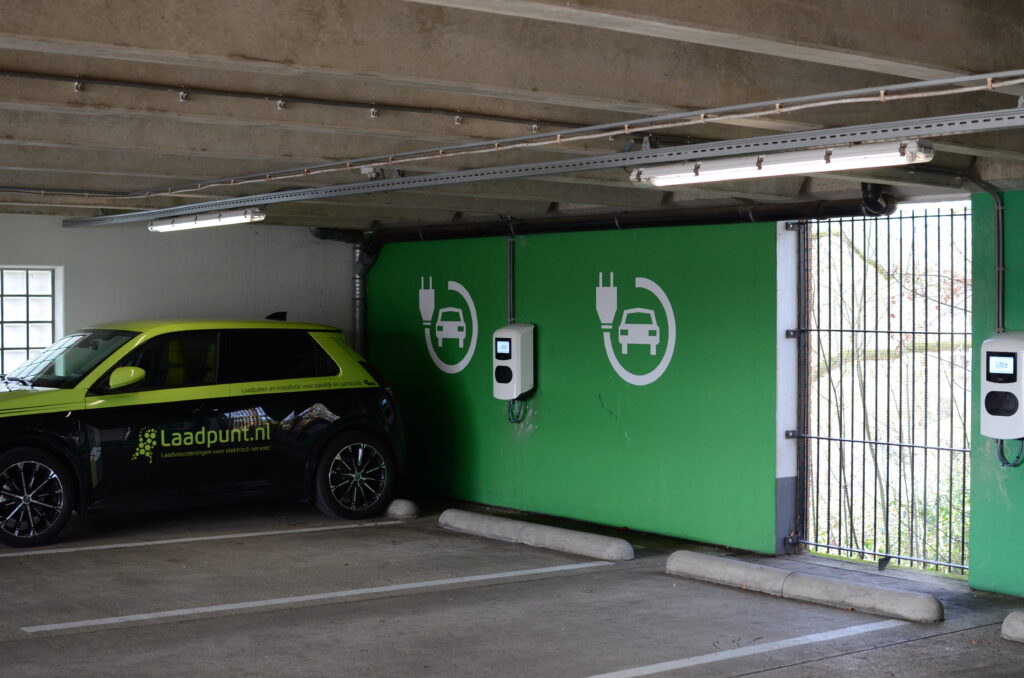 Laadpunten verspreid over de parkeergarage