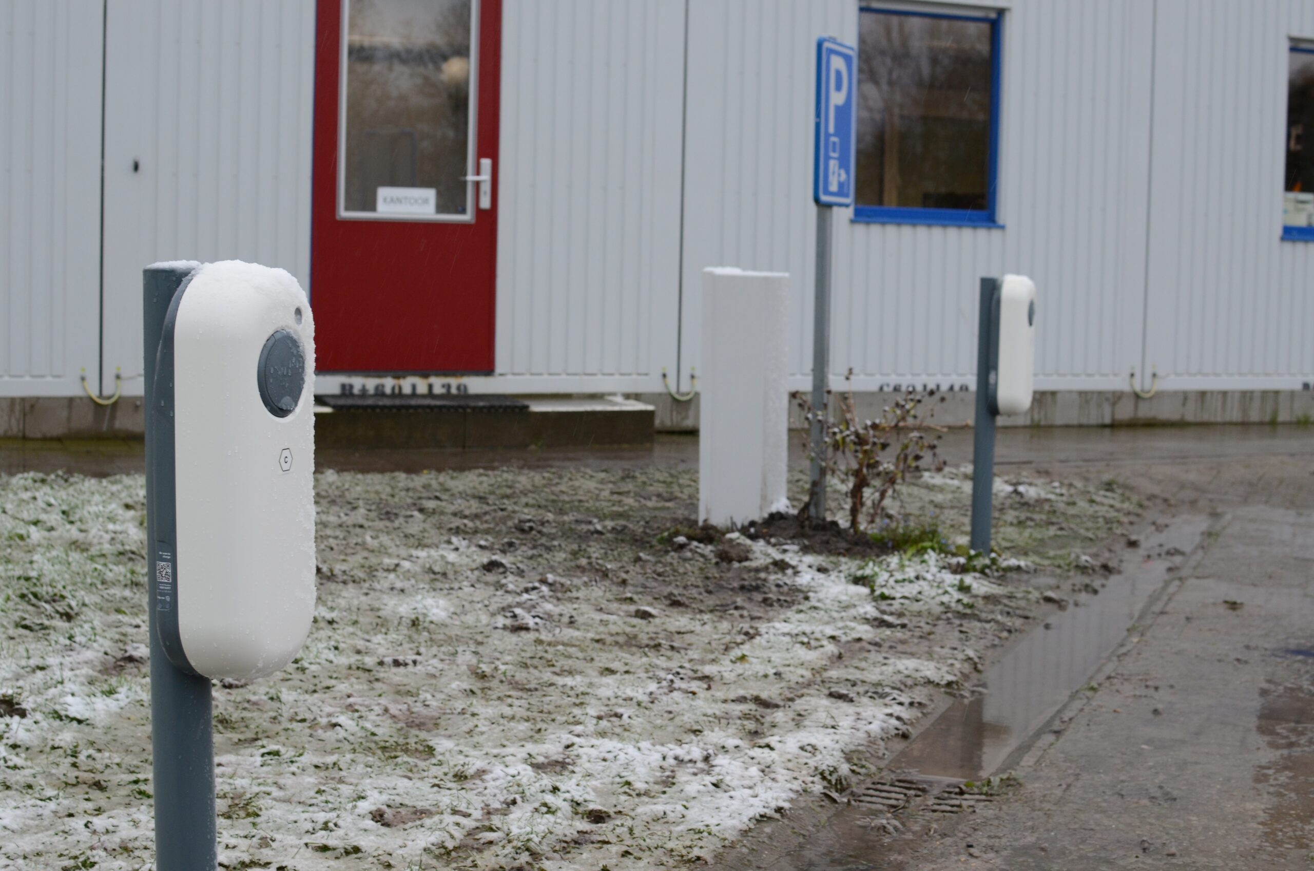 Een installatie van zakelijke laadpalen van Shell Recharge. Waarbij de laadgelegenheid duidelijk is aangepast aan de vraag. Beginnen met één, nu een tweede. Maar met ruimte voor heel wat meer laadpalen. Future proof, zodat ingrijpende aanpassingen bij uitbreiding achterwege kunnen blijven.