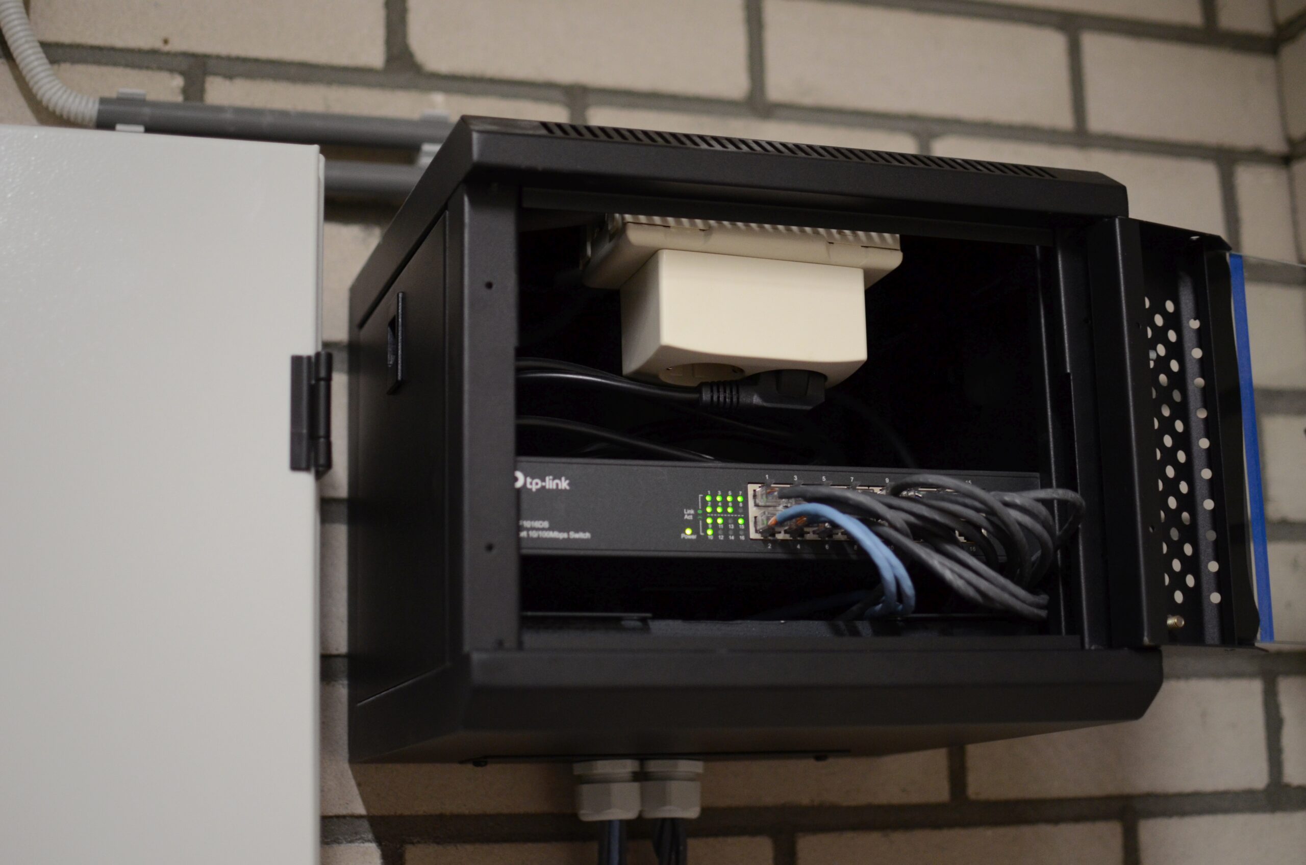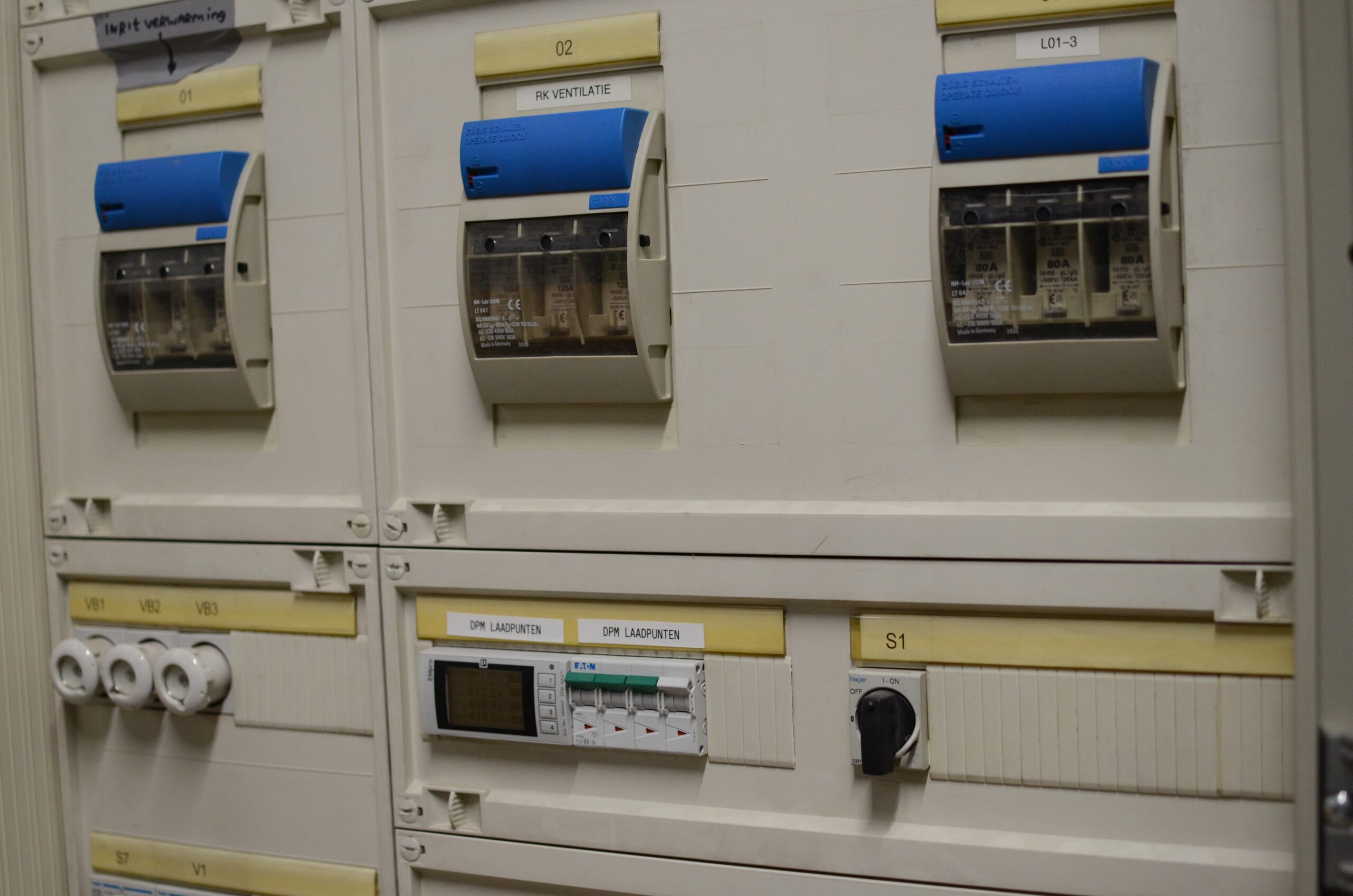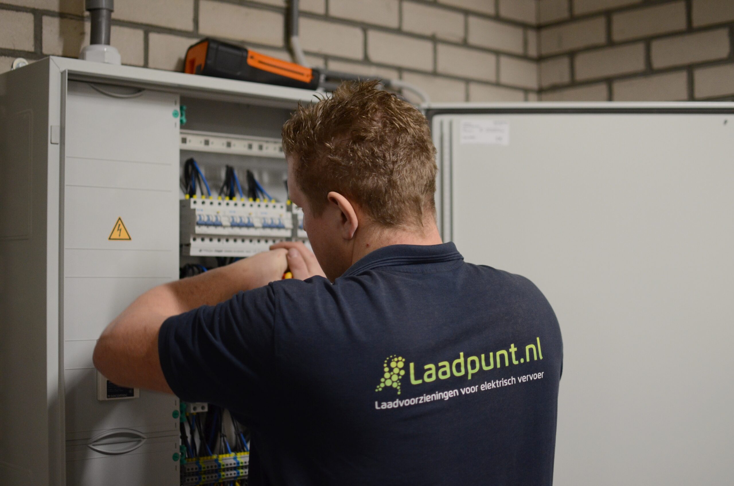 Het gaat hier om een kabeltracé van ongeveer 130 meter. Vanaf de hoofdaansluiting is de bekabeling eerst via een aanwezige kabelgoot richting een serviceruimte gebracht. In die ruimte hebben we een onderverdeelkast geplaatst en gezorgd voor een switch in een los kastje. De onderverdeelkast is er voor de afzekering van de laadpunten. Ieder laadpunt heeft een eigen voedingskabel met ook een eigen aardlekautomaat. Voor veilig opladen en ter voorkoming van vage storingen. Dankzij de switch maakt elk afzonderlijk laadpunt verbinding met internet. De laadpunten van Shell Recharge hebben weliswaar een ingebouwde sim-kaart, maar dat haalt niks uit wegens een gebrek aan ontvangst in de betonnen bak die een parkeergarage is. Door te zorgen voor een goede verbinding kan iedereen altijd opladen en wordt kortweg gezorgd voor maximale bedrijfszekerheid.