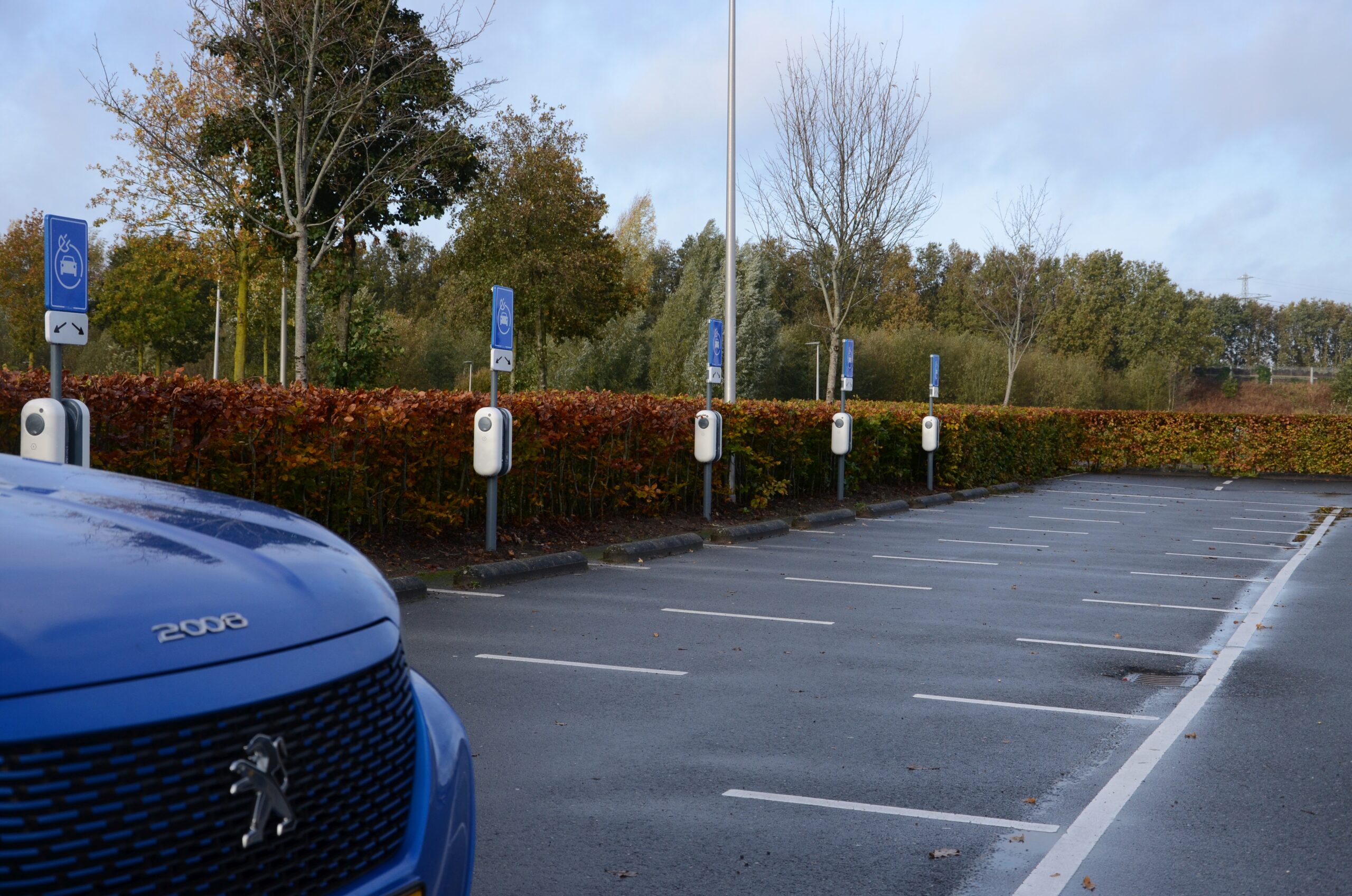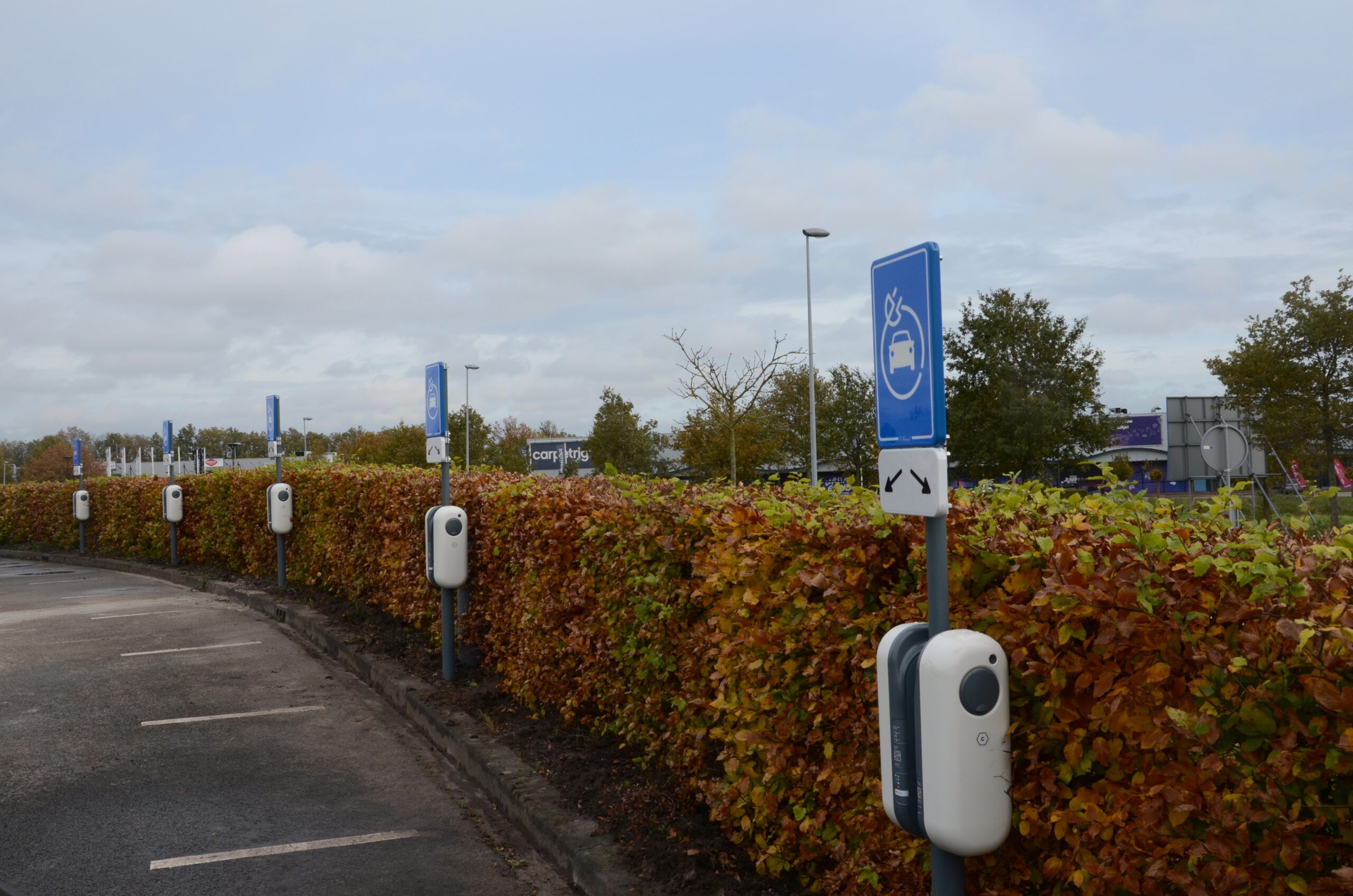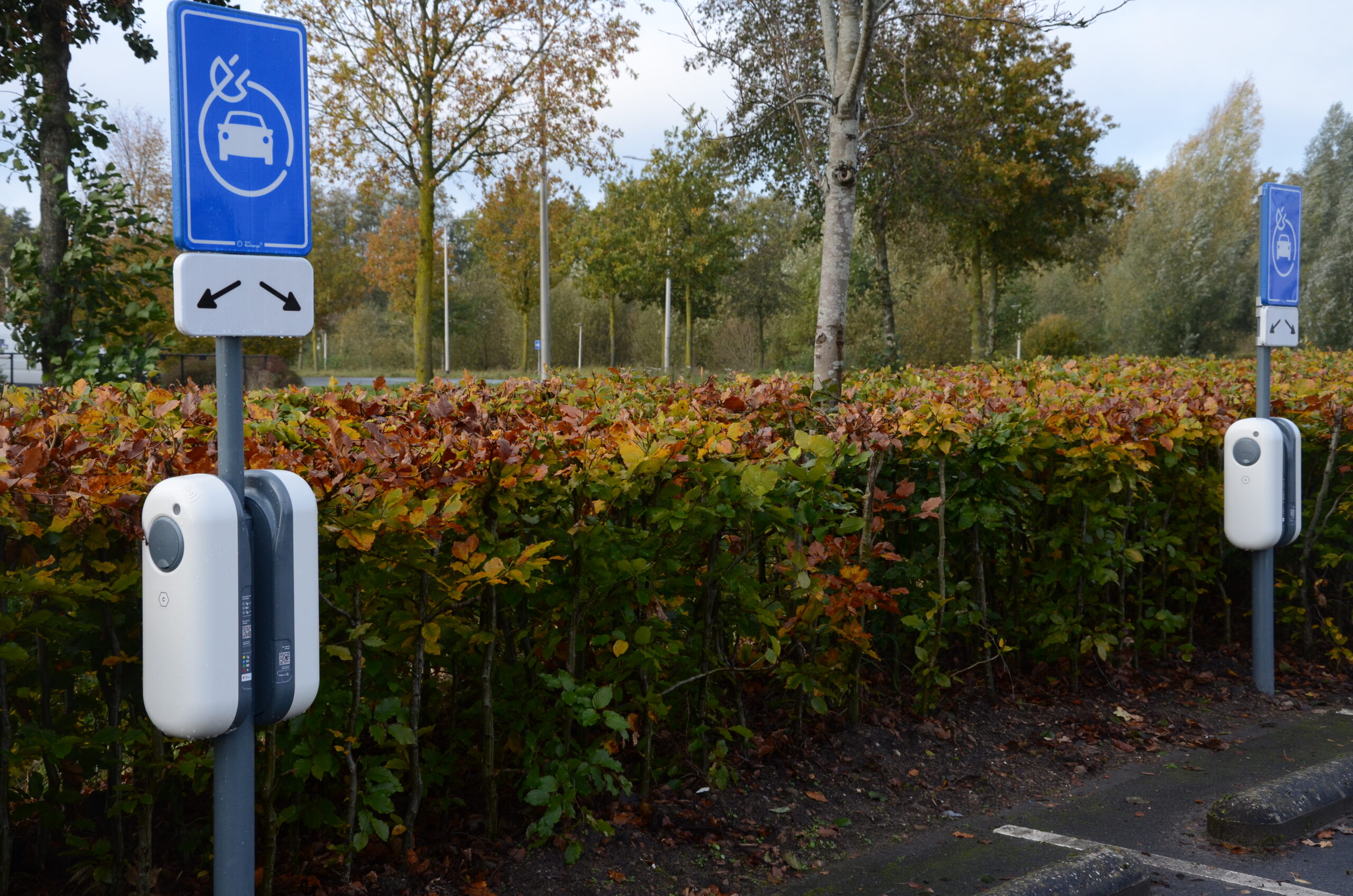 Vier laadpunten op twee dubbele palen. Klik voor een grotere foto.