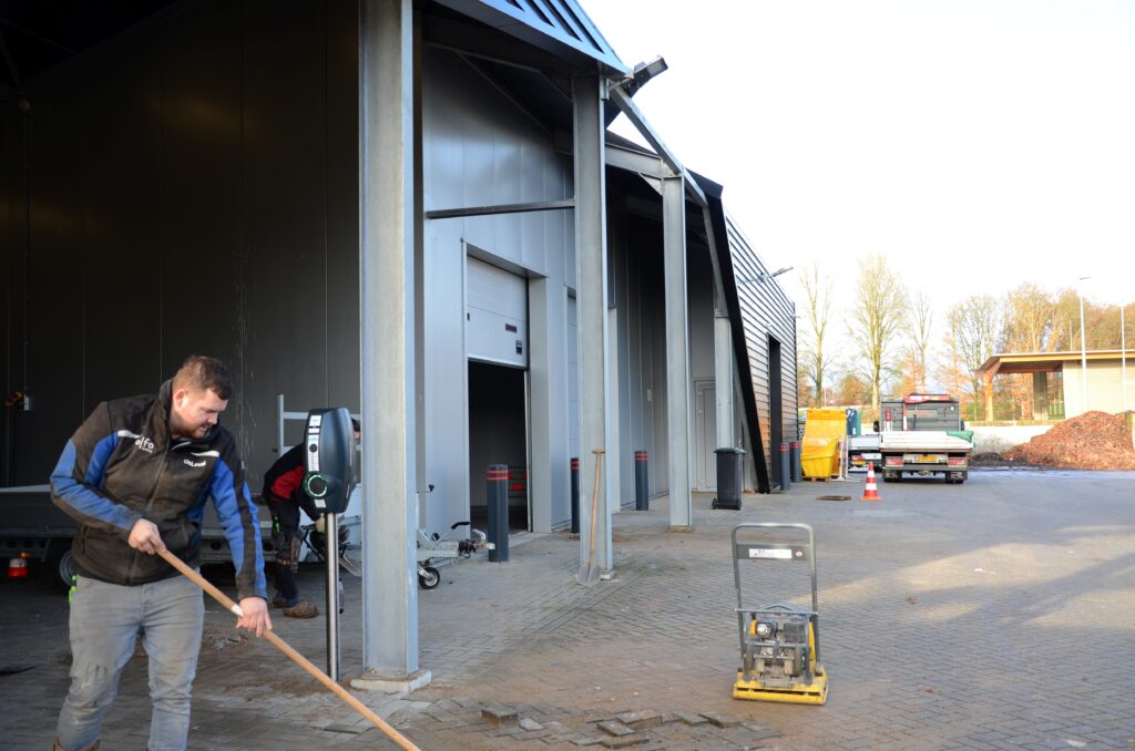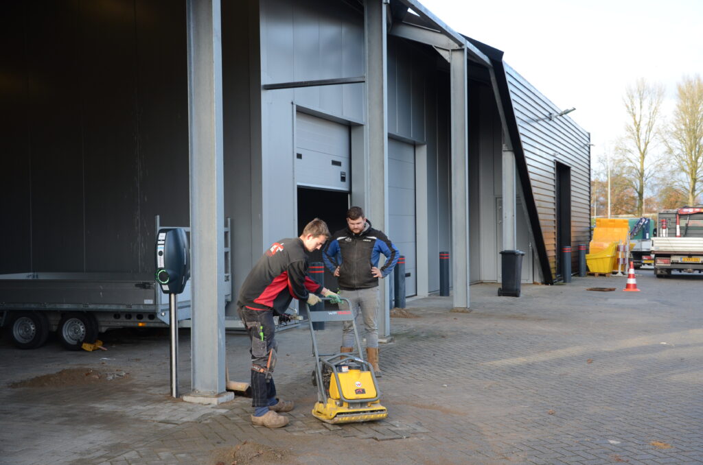 Voor de kabeldoorvoer is gebruik gemaakt van een forse mantelbuis, die ligt op een diepte van ongeveer 120 cm. Alle graaf- en straatwerkzaamheden zijn uitgevoerd door een team van professionele grondwerkers, waarbij in dit geval ook een minigraver is ingezet. Dat laatste vergemakkelijkt het werk aanzienlijk, want zoals zo vaak op bedrijfslocaties is ook hier puingrond aanwezig.