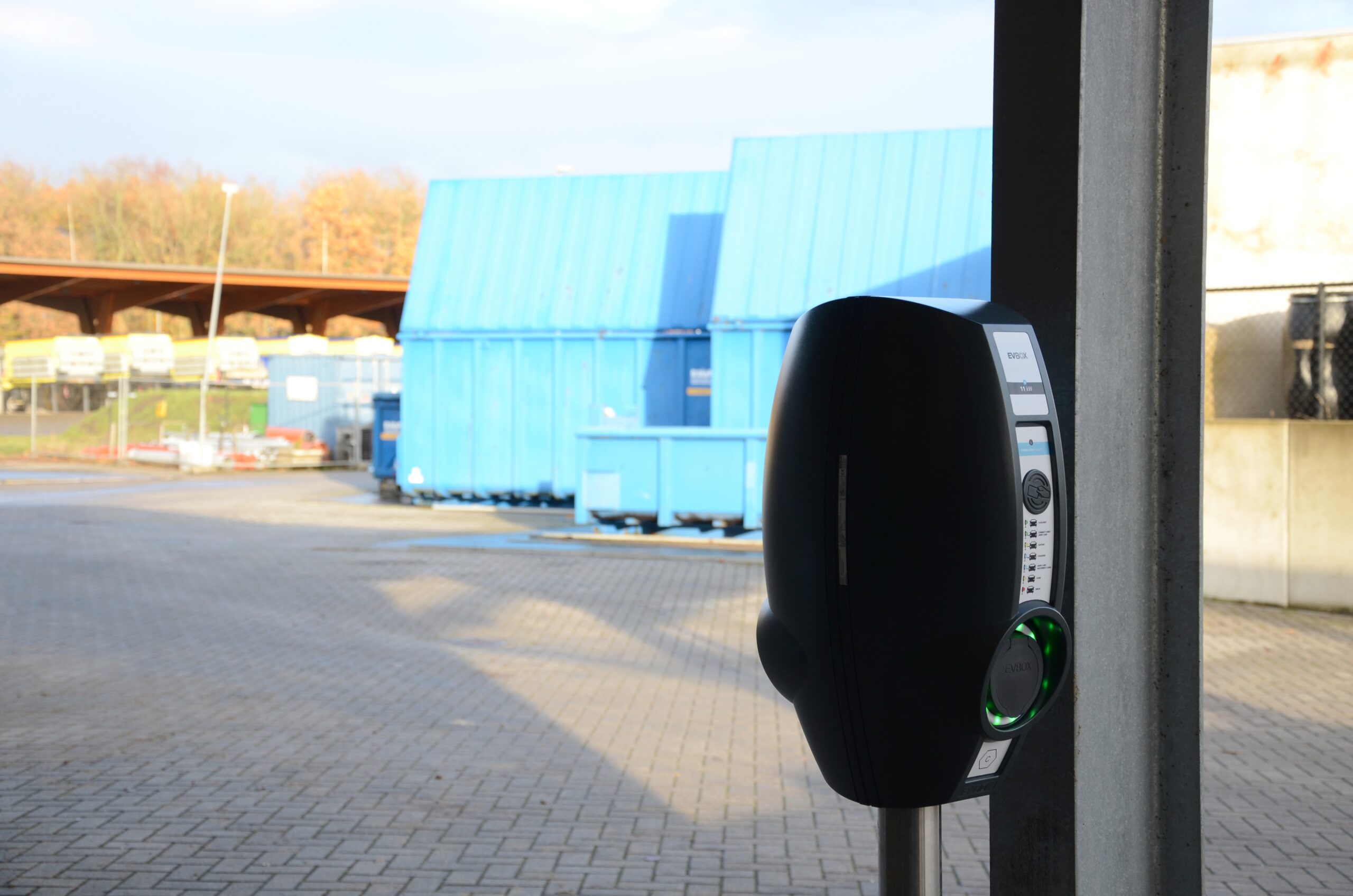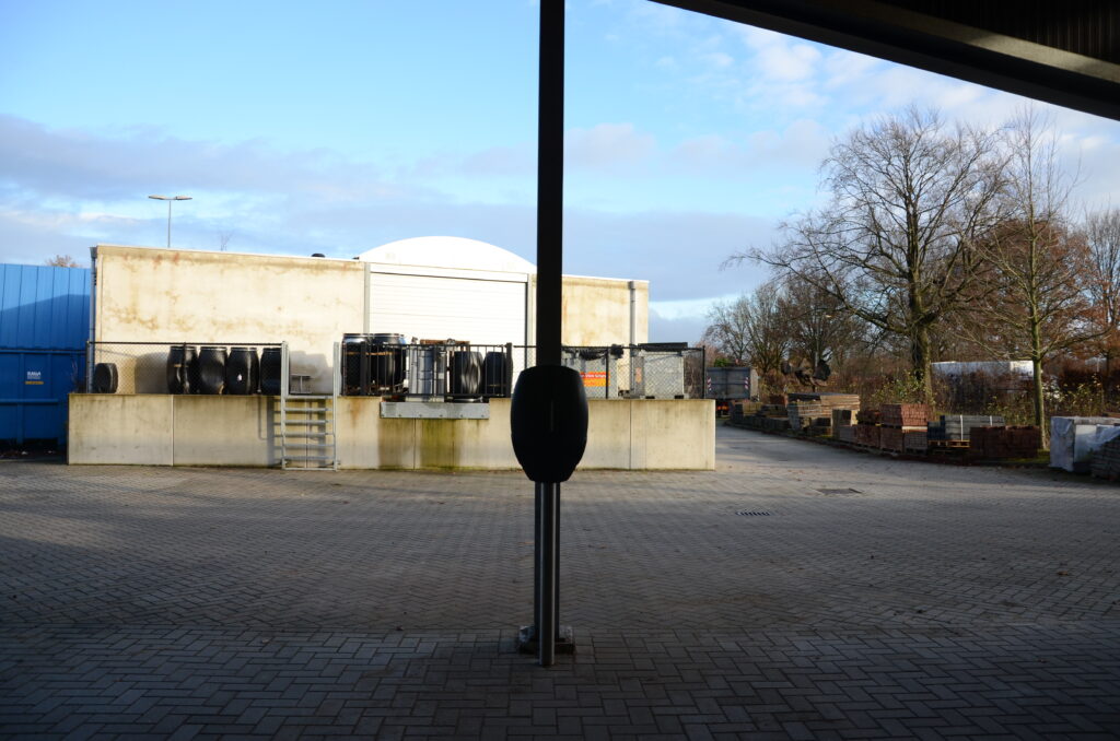 We hebben op de gemeentewerf in Baarn nu twee EVBox BusinessLine-laders geplaatst. Er is gekozen voor paalmontage, in het verlengde van een metalen kolom. Dat ziet er niet alleen netjes uit, maar zorgt er ook voor dat de kans op schade door een onfortuinlijke aanrijding minimaal is. De laadpunten zijn aangesloten op de stroomvoorziening van het nabijgelegen kantoortje, de afzekering is geplaatst in een losse onderverdeelkast. Dat is wel zo overzichtelijk en maakt het bovendien kinderlijk eenvoudig om een (incidentele) reset uit te voeren.