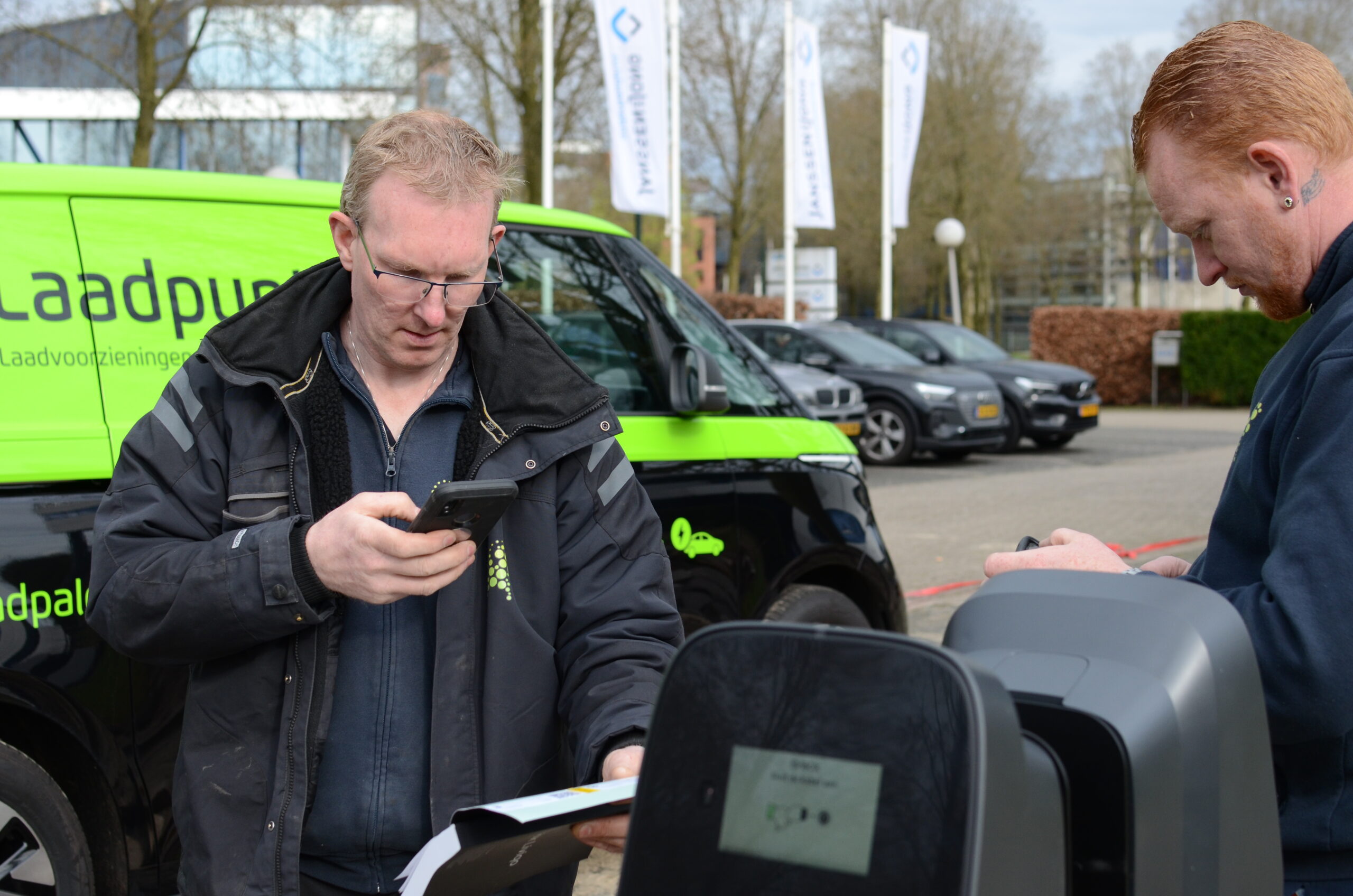 Opladen met de EVBox Liviqo, het werk gezamenlijk uitgevoerd. Een geschikte lader, elk deel van het werk uitgevoerd door een gespecialiseerde partij.